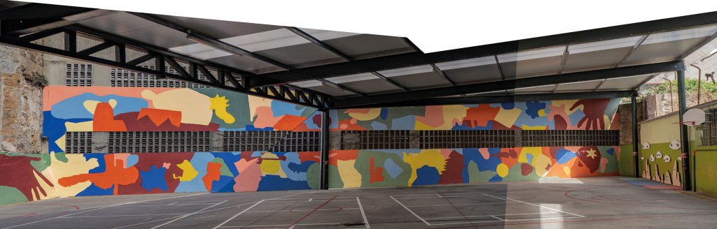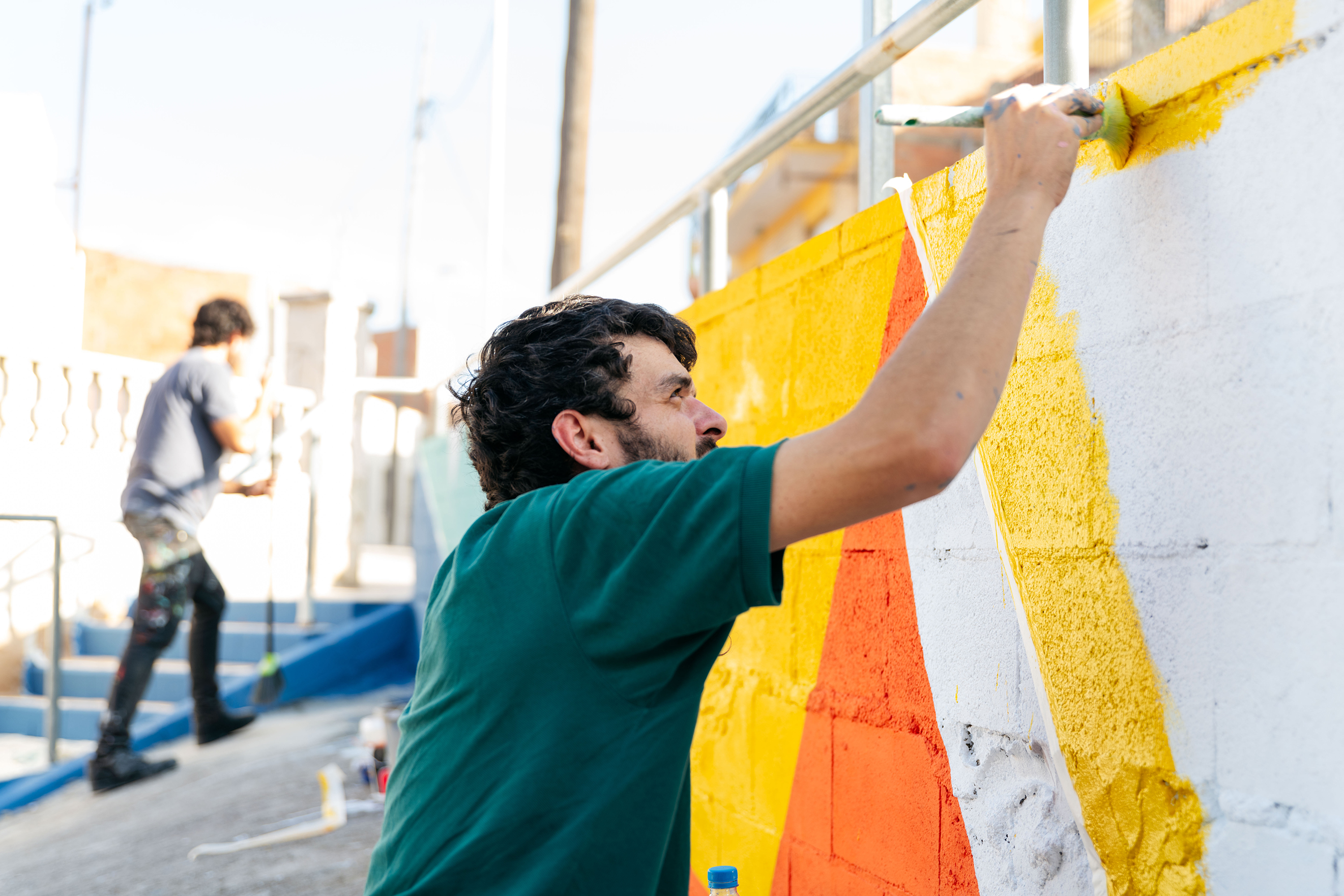 Un trabajo en equipo en el cual, después de discutir y comprobar de primera mano las dificultades para crear algo consensuado, todo el mundo cogió el pincel y puso su huella física en la realización.