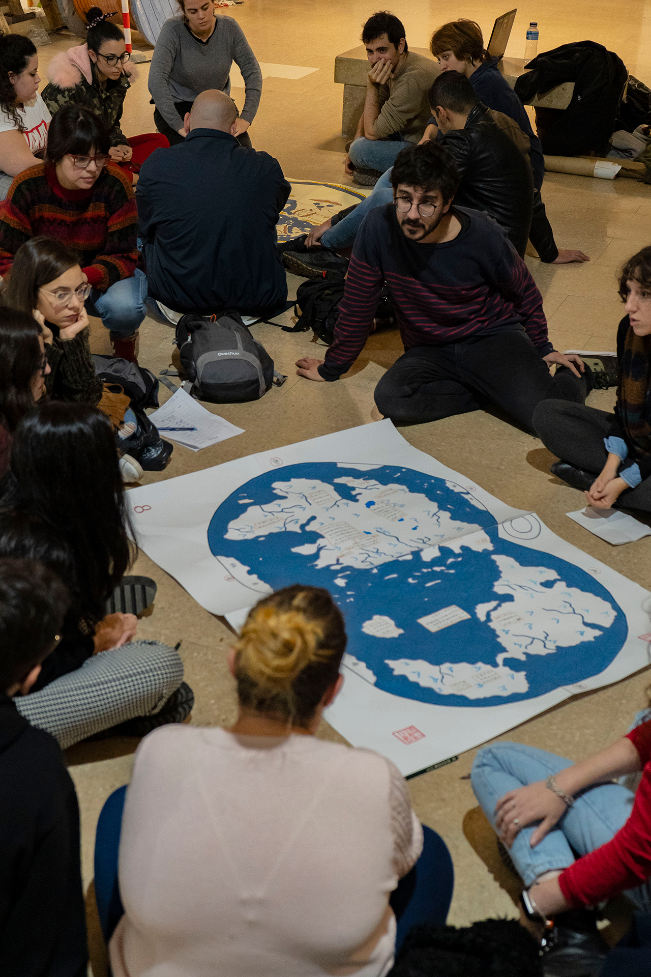 Trabajamos conjuntamente con TRAMA para desarrollar y debatir sobre el planteamiento de historia del arte que incluyera aquellas personas/obras que se han visto desplazadas de la historia que conocemos. Para ello se repartieron seis mapas diferentes a seis grupos de trabajo, cada uno de ellos con una visión diferente del mundo ya que perteneces a diversas épocas históricas.
