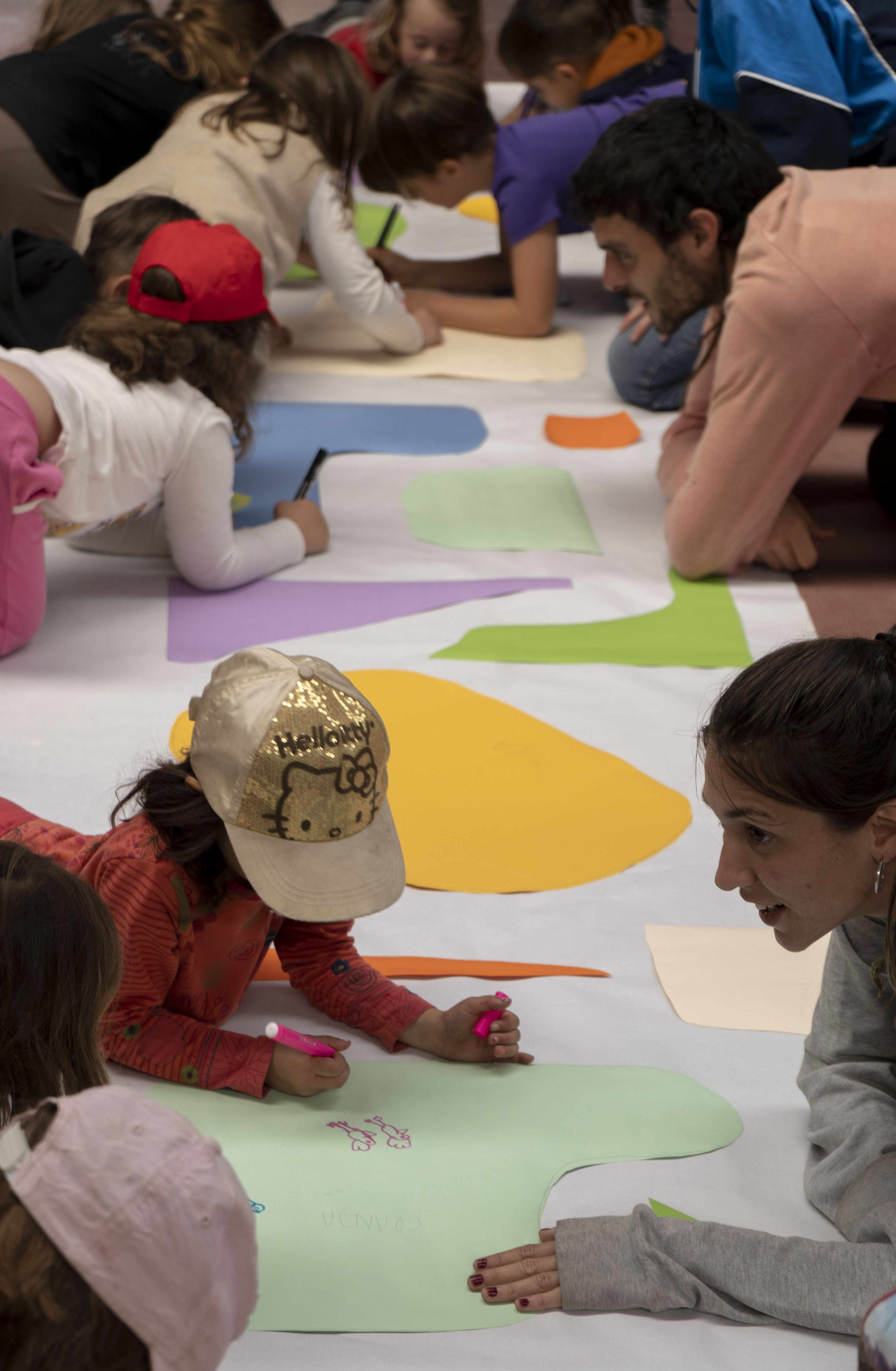 Esta fue una dinámica entre 3 cursos diferentes. Los primeros fueron los de infantil que dibujaron a través de